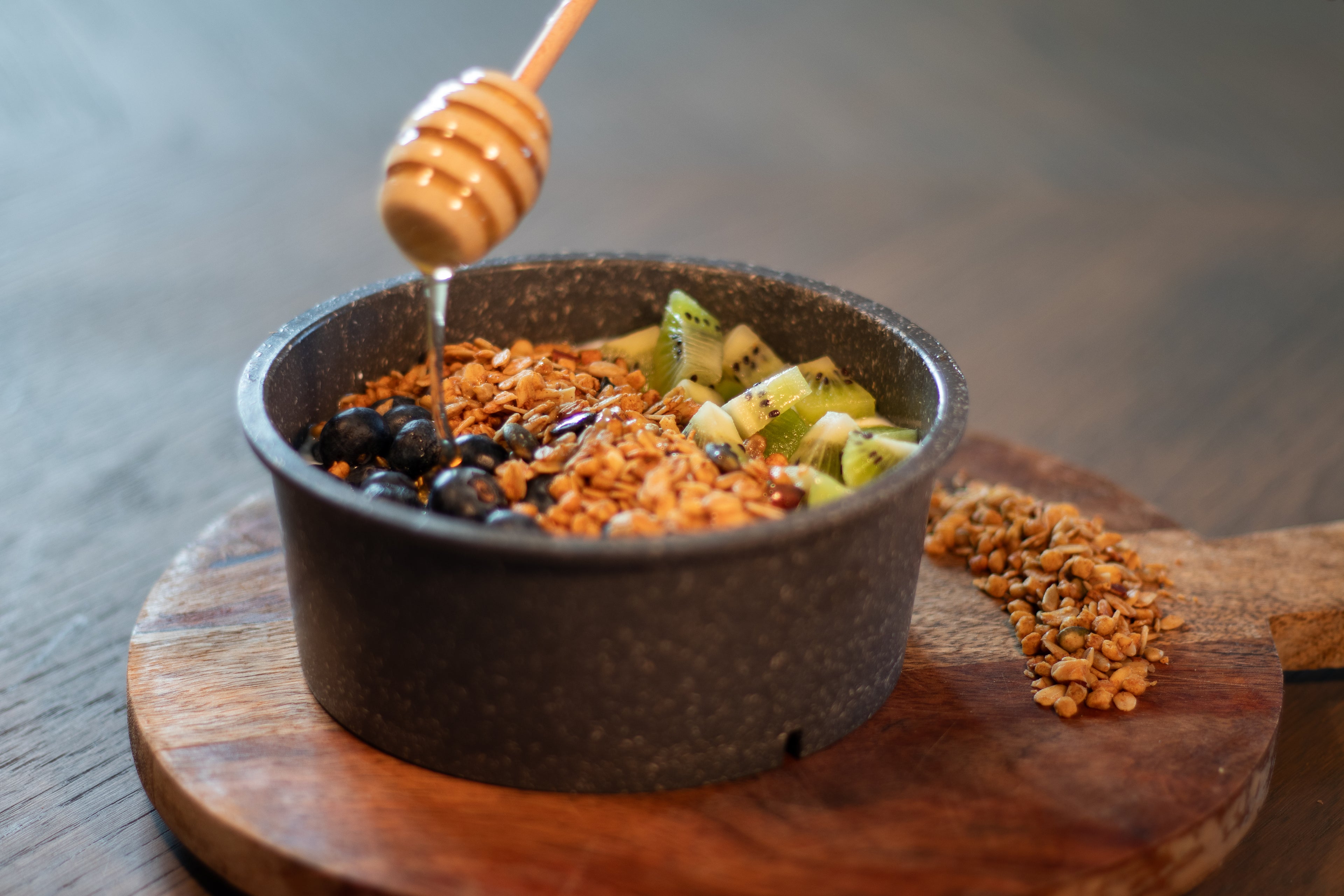 Onze ontbijtjes zitten boordevol voedingsstoffen die je lichaam en geest ondersteunen. Neem bijvoorbeeld de blauwe bessen in onze kwarkbowl: deze kleine krachtpatsers zitten vol anthocyanen, antioxidanten die ontstekingsremmend werken en bijdragen aan een betere hersenfunctie. Studies tonen aan dat anthocyanen de concentratie verbeteren en zelfs de kans op cognitieve achteruitgang verkleinen. Met andere woorden: een klein detail in je ontbijt kan een groot effect hebben op je prestaties.