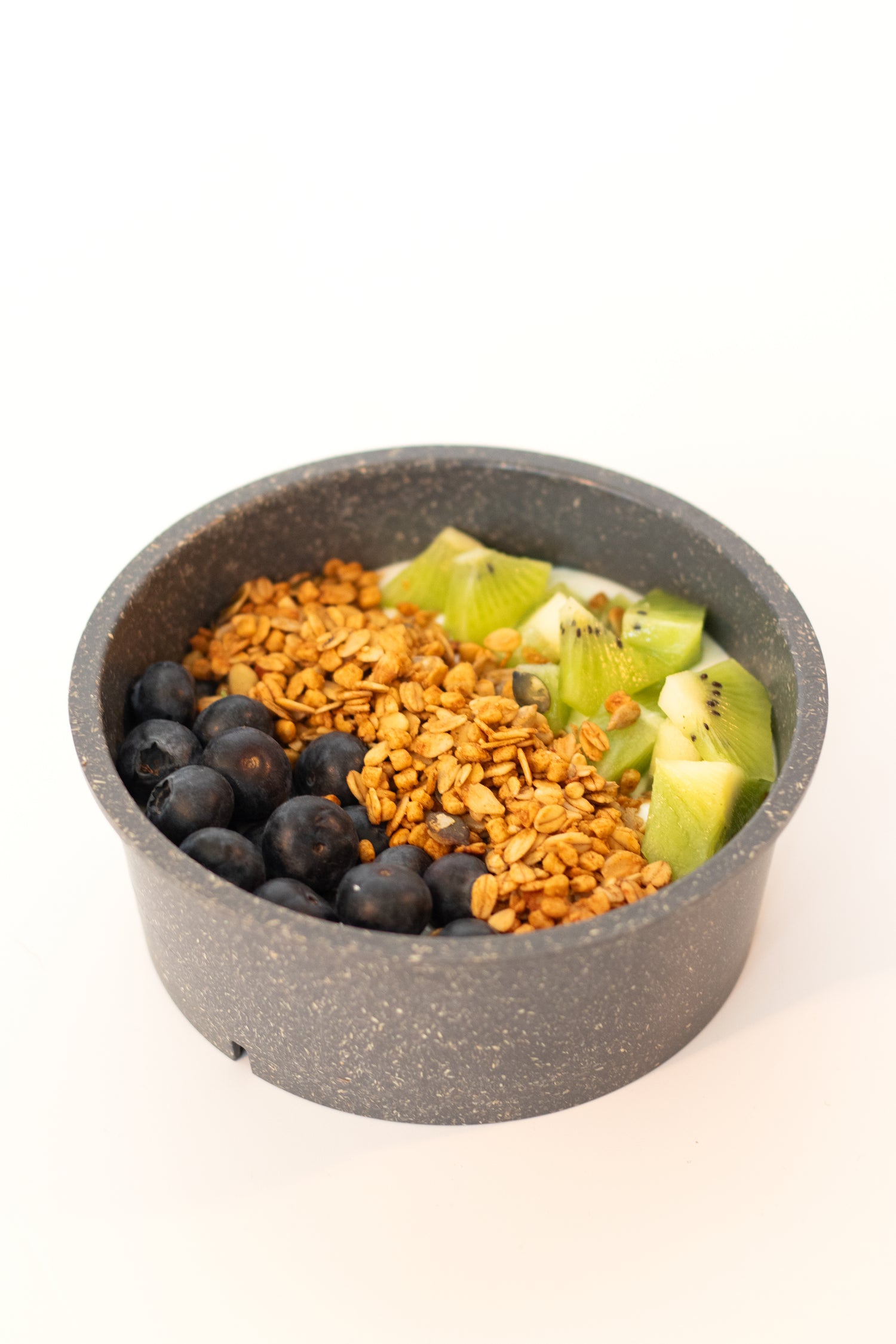 Vezels (fruit, granola) → Ondersteunen een gezonde spijsvertering en helpen de bloedsuikerspiegel stabiel te houden.