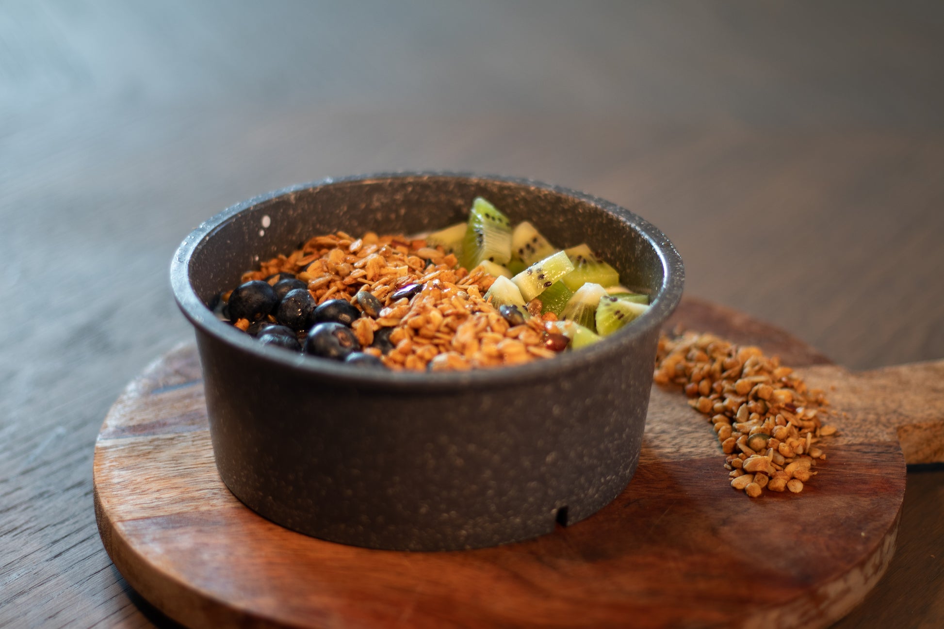 De basis van romige magere kwark zit boordevol eiwitten en calcium, perfect voor een verzadigd en energiek begin. We maken het compleet met verse blauwe bessen, sappige kiwi en een knapperige eiwitgranola, voor de ideale combinatie van fris, zoet en crunchy.