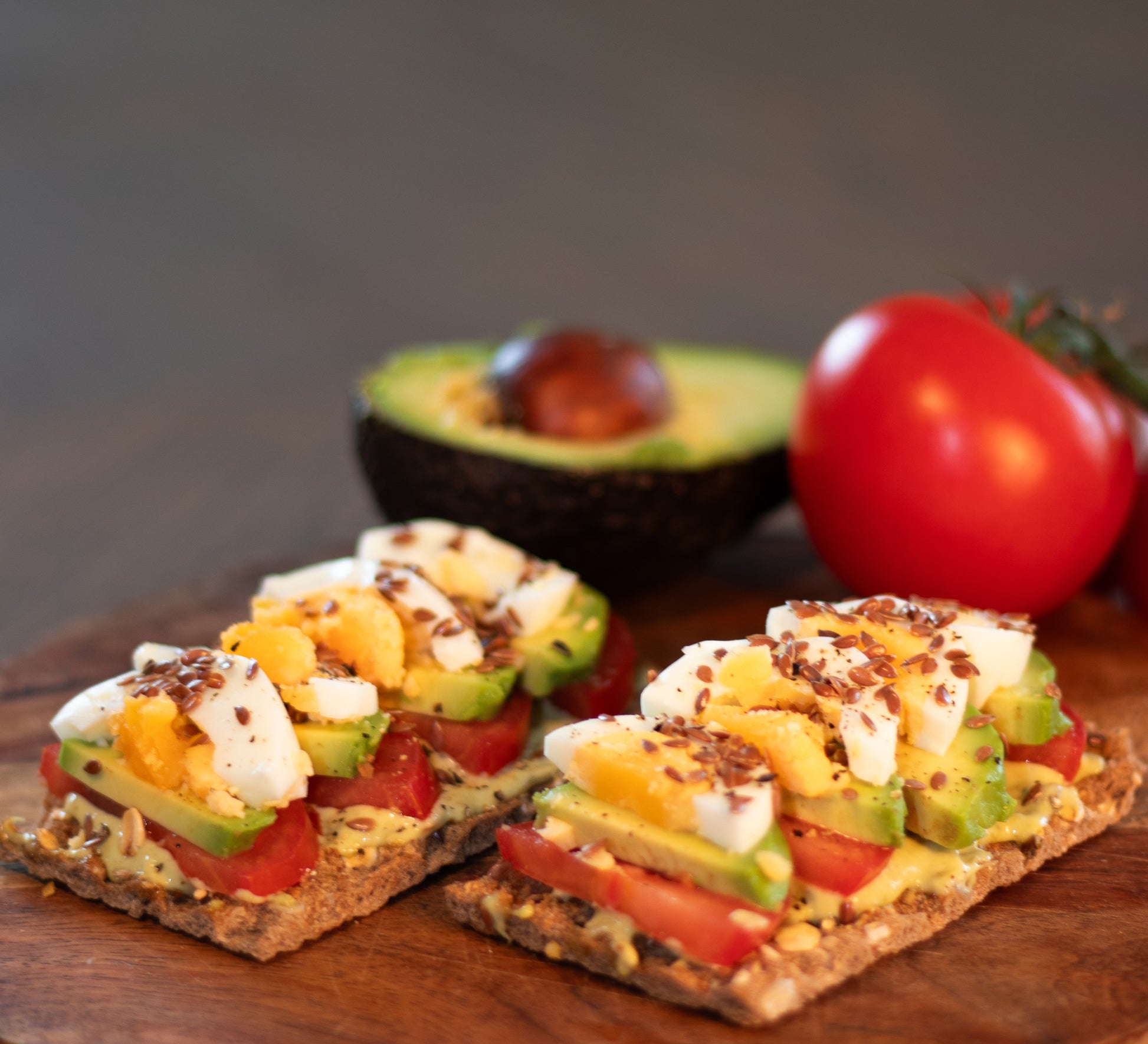 Elke bestelling bevat twee luchtige pompoenpit crackers, belegd met zuivelspread, romige avocado, een perfect gekookt ei, verse tomaat en lijnzaad voor een extra boost van vezels en gezonde vetten. Deze smakelijke combinatie biedt de perfecte balans van frisse en hartige smaken, ideaal voor een energieke start van de werkdag.